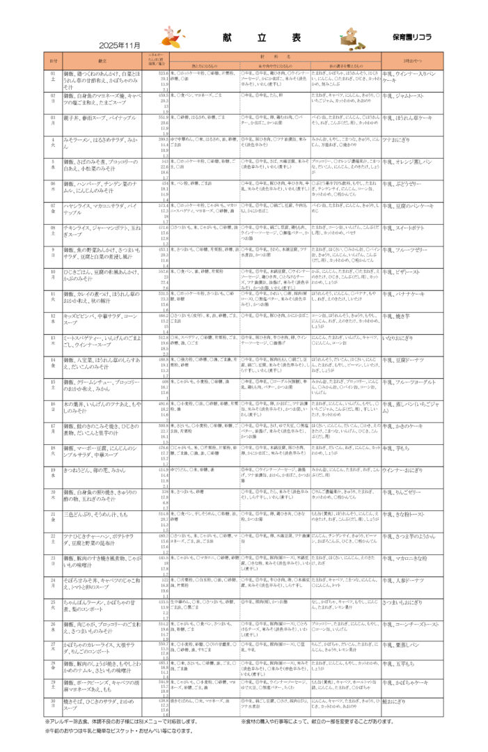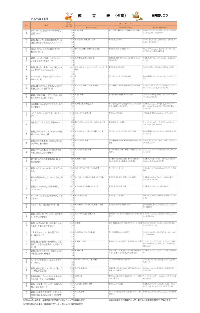 さっそく11月の献立情報をお届けします!